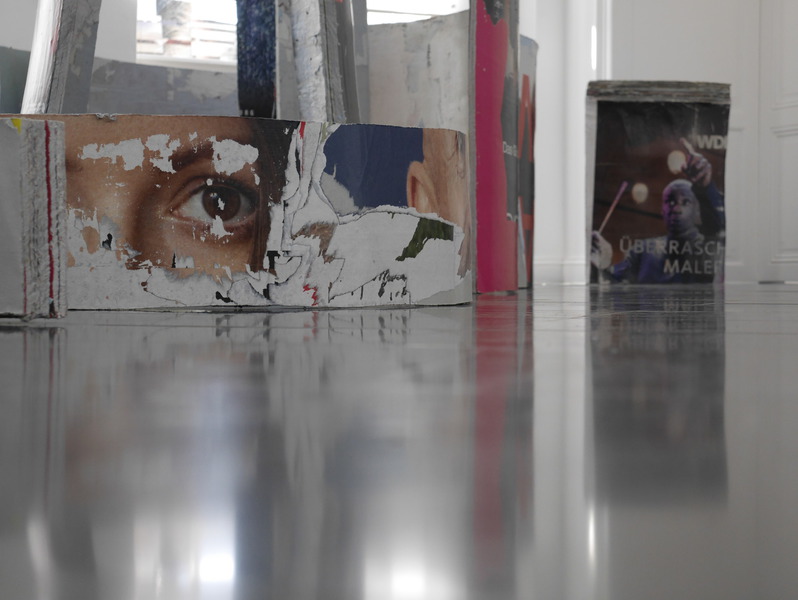 Inspiration und Ausdrucksmittel: Ich arbeite mit Materialien voller Geschichte – Altkleider, Stoffe, Litfaßsäulen, Glas. Sie besitzen einen eigenen Spirit, wirken sperrig – und ermöglichen dadurch eine unverwechselbare Formensprache.